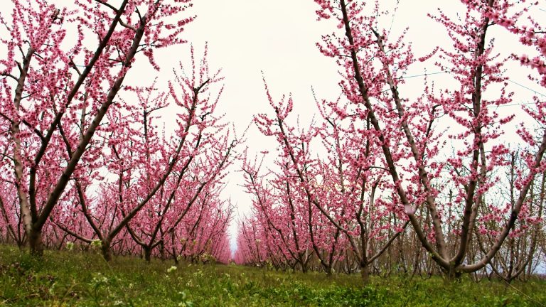 Primăvara în Veria, Grecia, aduce o explozie de flori de piersici, atrăgând mii de...