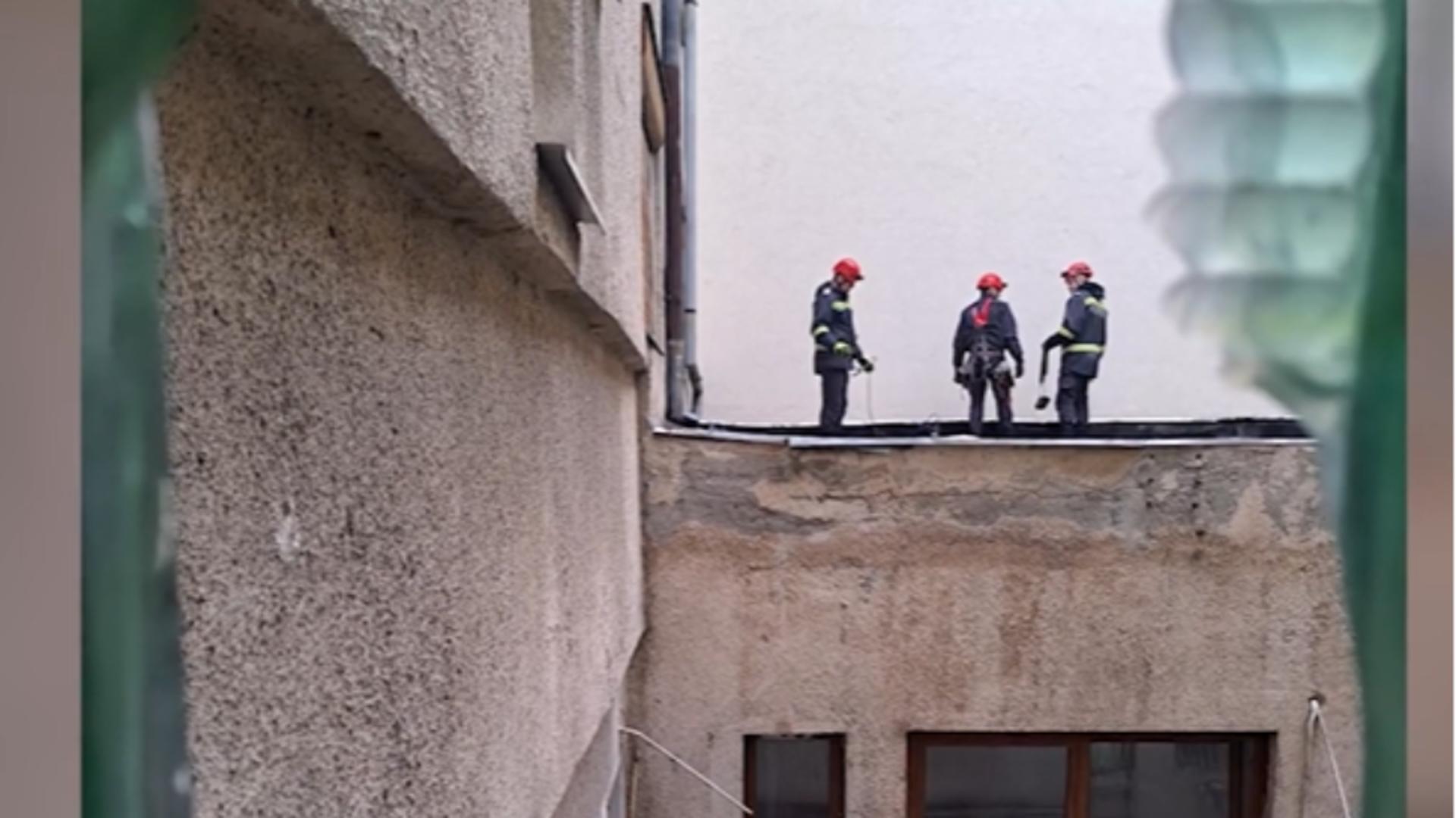Vecinii spun că au auzit în miez de noapte o bubuitură, însă nimeni nu și-a dat seama ce s-a întâmplat. Bărbatul a căzut de la etajul 4, pe o platformă de la etajul 1, într-o zonă greu accesibilă.