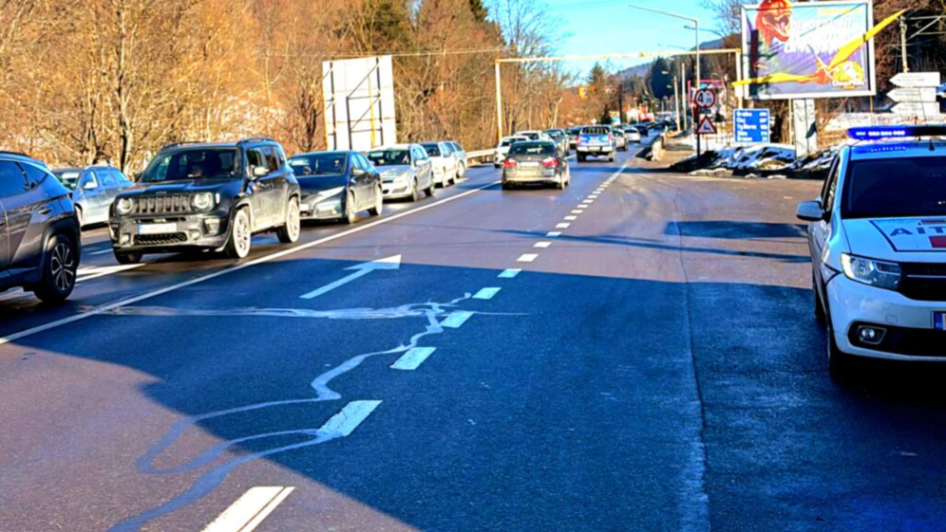 Pe DN1, în localitatea Predeal, la intersecţia DN1 cu DN 73A, poliţiştii dirijează circulaţia pentru a evita formarea de coloane.