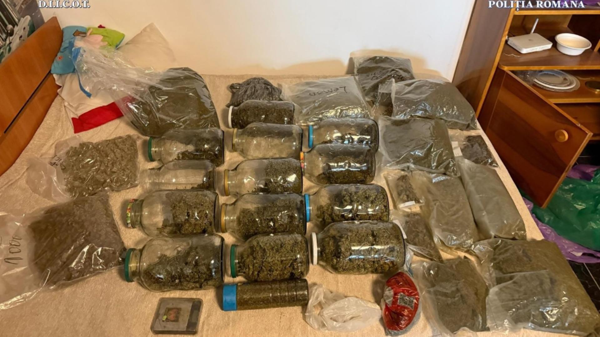 „În urma celor două perchezițiilor domiciliare efectuate ieri, 15 ianuarie 2025, în municipiul București, au fost descoperite și ridicate aproximativ 20 de kilograme de canabis și un kilogram de semințe de canabis (droguri de risc), 350 de grame MDMA și 350 de grame de ciuperci halucinogene (droguri de mare risc), peste 30 de pliculețe, borcane și recipiente, conținând diverse cantități de substanță solidă și lichidă, aflate în curs de expertizare, precum și ustensile, recipiente, unelte, echipamente și trei cântare de precizie ce ar fi fost destinate prelucrării, ambalării și cântăririi drogurilor, toate purtând urme de substanță”, mai arată sursa citată.