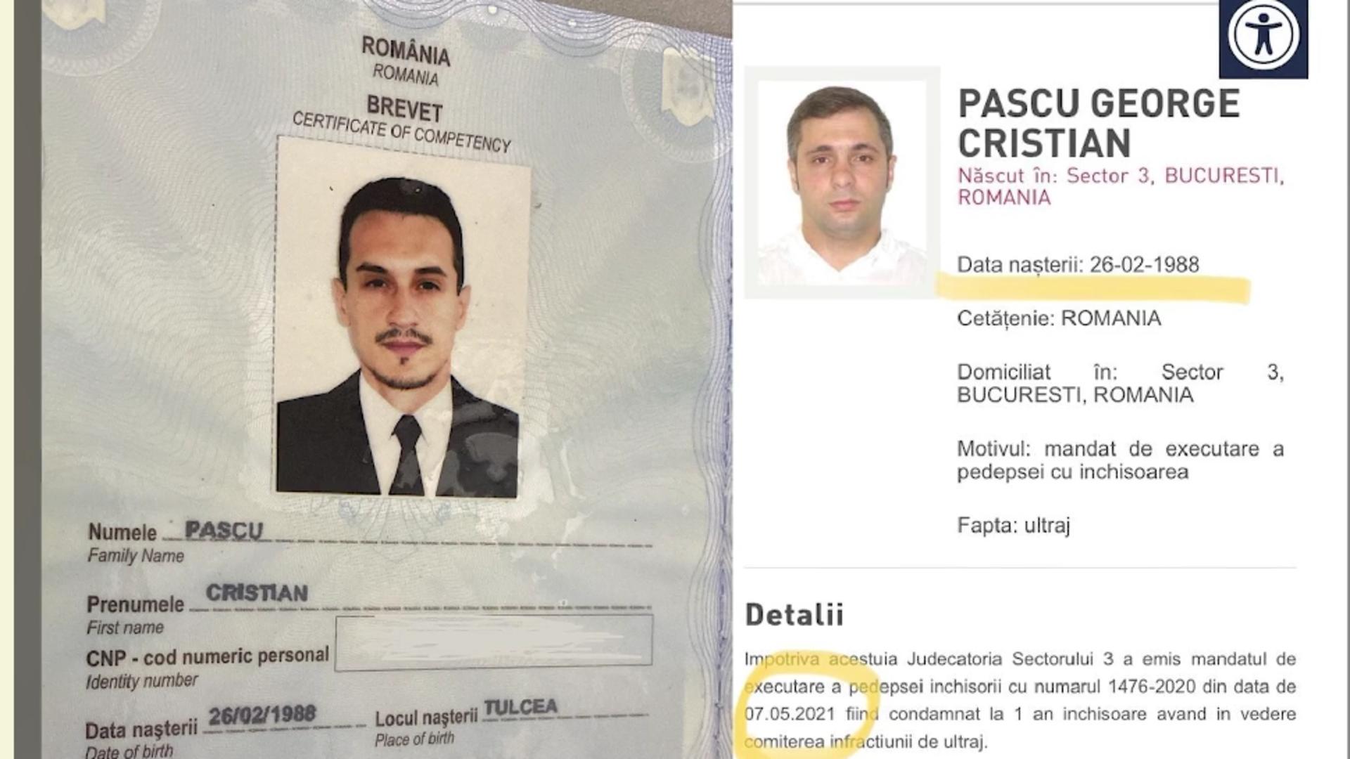 Navigatorul știa că are ghinionul să aibă exact aceleași date de identitate cu ale unui infractor: ambii sunt născuți în februarie 1998 exact în aceeași zi. Singura diferență este că bărbatul certat cu legea este născut în București și are un prenume în plus, față de navigatorul din Constanța. Singurele diferențe sunt că individul periculos este născut în București și are un prenume în plus.
