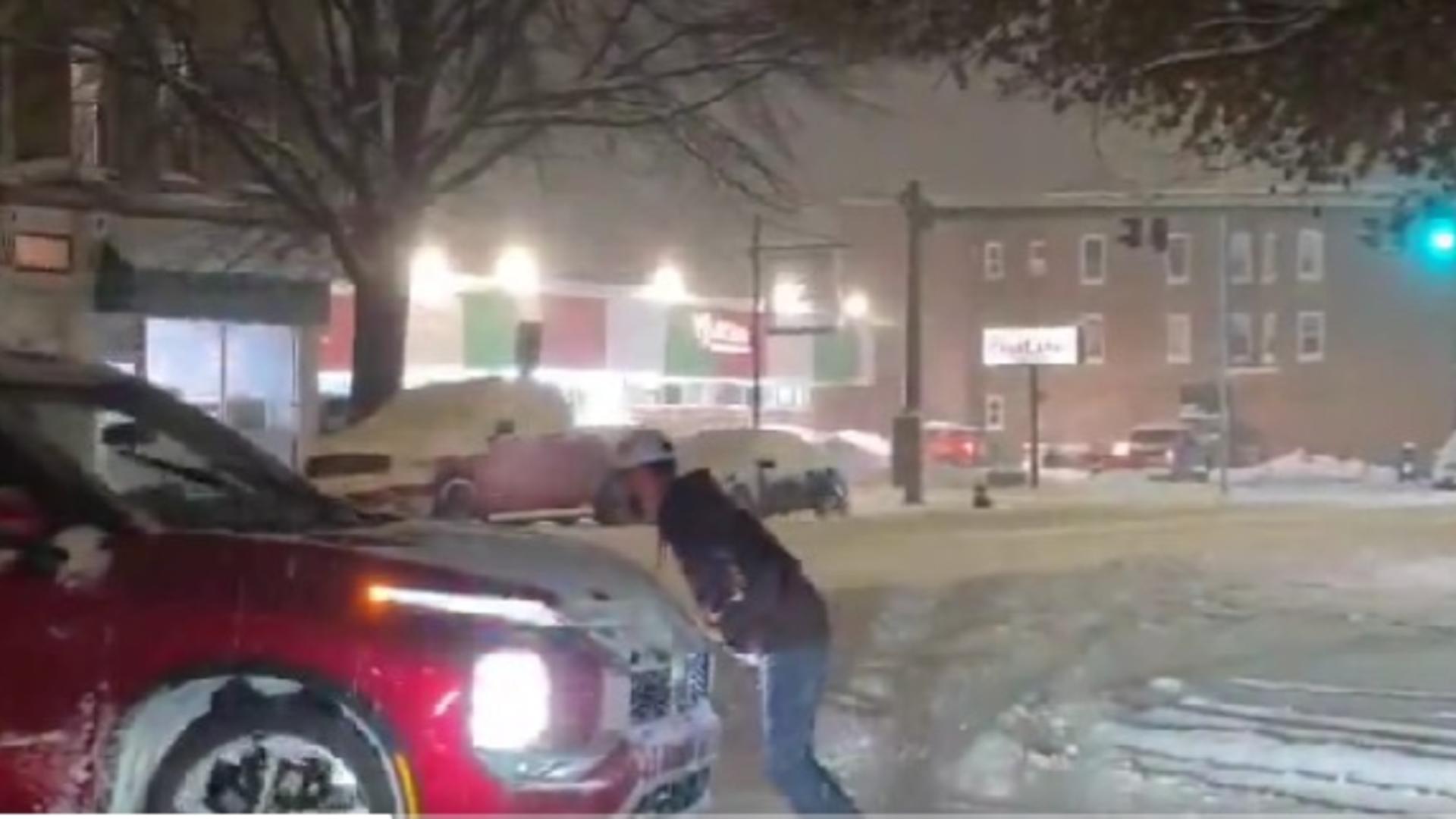 CARS ARE GETTING STUCK in New York, with tons of snow still falling!Storm Chaser Tornado Paigeyy is on this! pic.twitter.com/XGKhu4NA4o