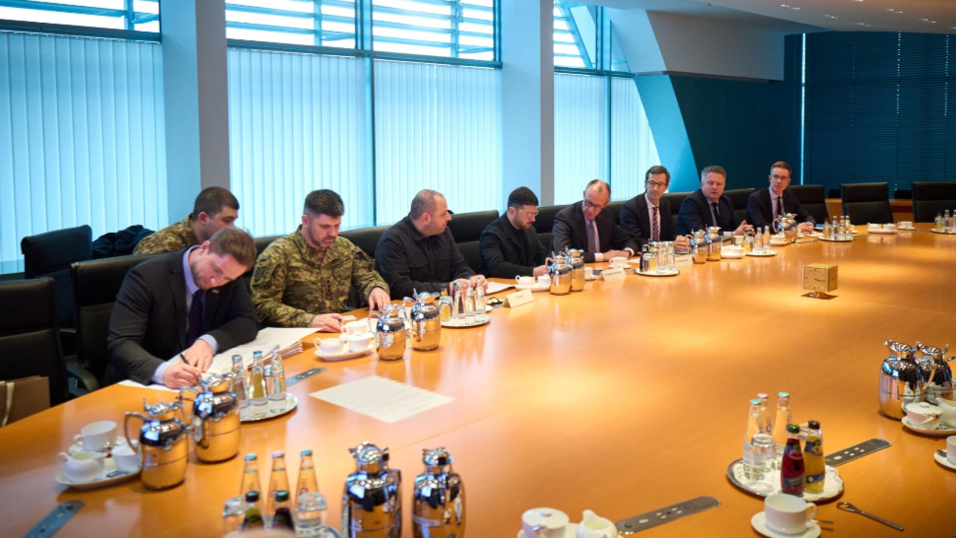 Un fotograf al AFP l-a văzut pe președintele Volodimir Zelenski părăsind cancelaria Germaniei, locul de desfășurare a întâlnirii, cu puțin înainte de ora 21:00 (20:00 GMT).