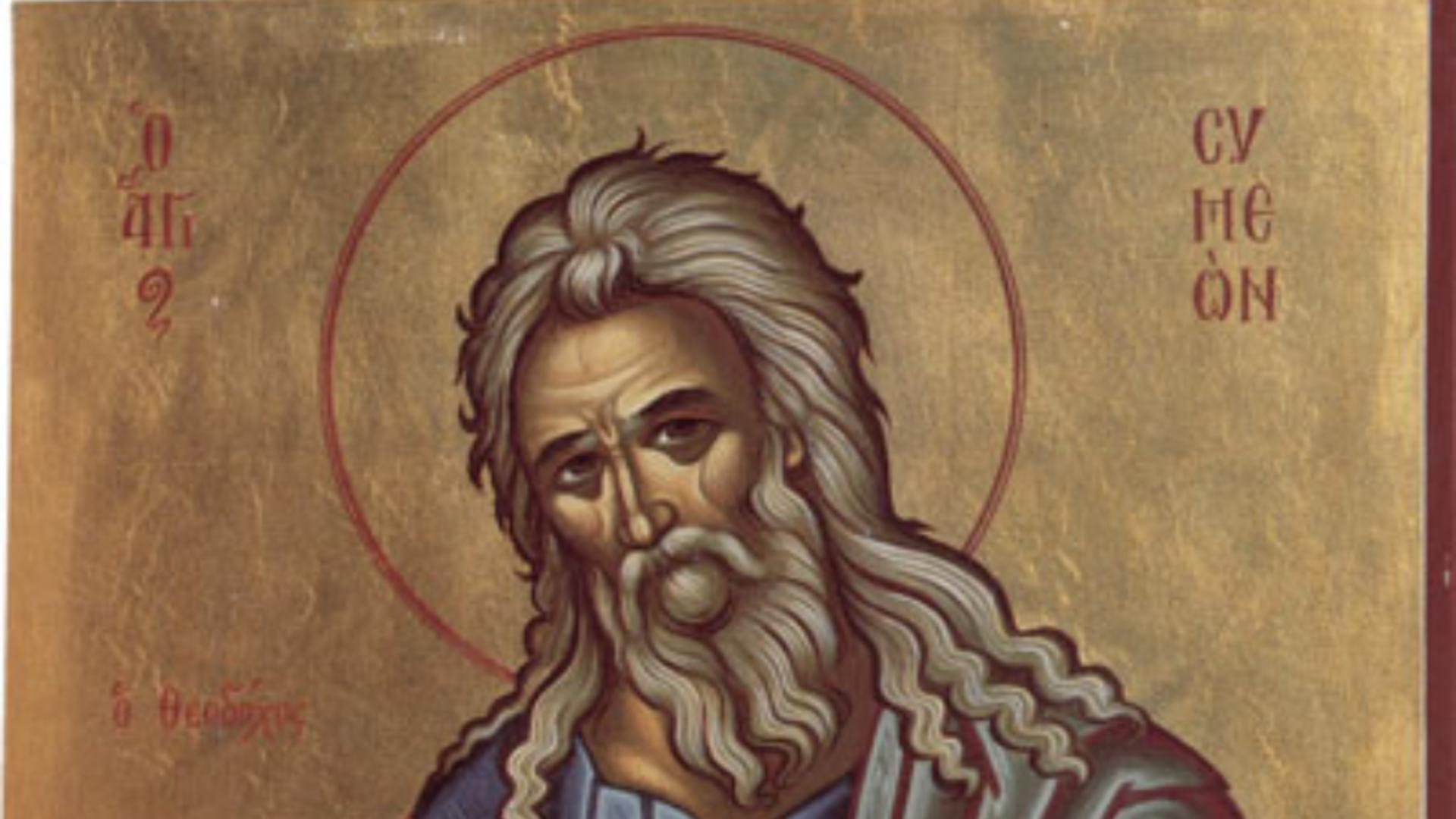 „Ce mare este in ceruri slava Sfantului si Dreptului Simeon, cel care in bratele sale pe Pruncul Iisus L-a primit! Ea se vede dintr-un eveniment din viata Sfantului Petru Atonitul, care se sarbatoreste la 12 iunie. Fiind comandant de osti, Petru a fost luat prizonier si aruncat in temnita in catatea Samara de pe malul raului Eufrat. Suferind in temnita, Petru se ruga cu lacrimi Sfantului Nicolae sa-l roage pe Dumnezeu sa-l scape de acolo, fagaduind ca isi va darui dupa aceea toata viata lui Dumnezeu. Sfantul Nicolae i s-a infatisat in vedenie si i-a spus ca desi el duce rugaciunea lui la Dumnezeu, Dumnezeu nu i-o implineste, pentru ca alta data la greu a mai facut aceasta fagaduinta si nu si-a tinut-o. apoi Sfantul Nicolae l-a sfatuit pe Petru sa se roage Sfantului si Dreptului Simeon care este foarte ascultat inaintea lui Dumnezeu, aflandu-se aproape de Tronul Lui, impreuna cu Preasfanta Fecioara si cu Sfantul Ioan Botezatorul. Petru a ascultat si a inceput sa se roage Sfantului si Dreptului Simeon. Atunci din nou i-a aparut Sfantul Nicolae, impreuna cu Dreptul Simeon, dar nu in vedenie ci aievea. Petru l-a vazut pe Dreptul Simeon in slava mare, cu fata stralucitoare si imbracat in hainele preotesti ale Vechiului Testament, purtand in mana un toiag de aur. Dreptul Simeon l-a intrebat pe Petru: “Voiesti sa-ti implinesti fagaduinta si sa te faci monah?” La aceasta, Petru a raspuns: “Voiesc, Stapane, cu ajutorul lui Dumnezeu”. Sfantul Simeon atunci a atins lanturile lui Petru cu toiagul sau si ele s-au topit ca ceara. Deschizand usa temnitei, Sfantul l-a scos pe Petru afara”. (Sfantul Nicolae Velimirovici, “Proloagele de la Ohrida“, vol. I, Editura Cartea Ortodoxa, Editura Egumenita)