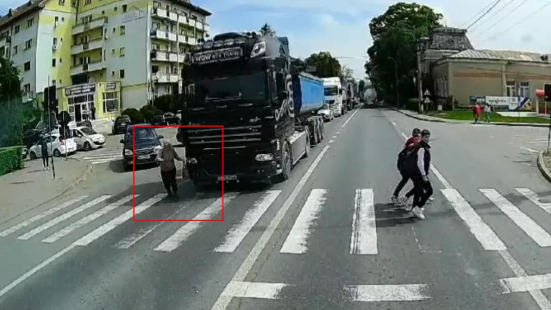 Femeie a sărit în fața unui TIR fără să se uite vreo secundă. Șoferul camionului oprisese la trecerea pentru pietoni pentru a da prioritate mai multor pietoni, însă femeia i-a ieșit în cale înainte de a ajunge la trecerea marcată, potrivit BZI.