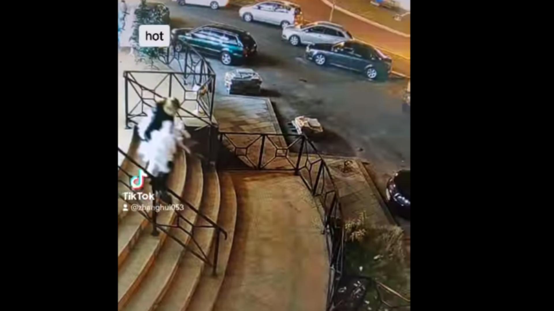 La un moment dat, în imagini se poate vedea că apare și un copil care însoțește hoața.