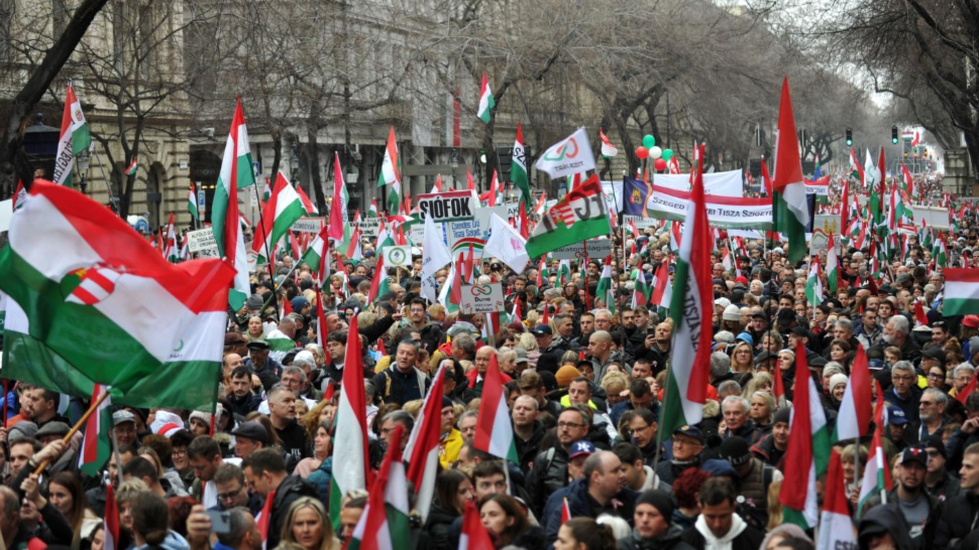 „Ungaria merită mai mult, Ungaria vrea să trăiască din nou. Primăvara a venit și împreună vom pune capăt iernii lui Orban”, a replicat liderul opoziției Peter Magyar în fața propriilor susținători adunați în centrul Budapestei.